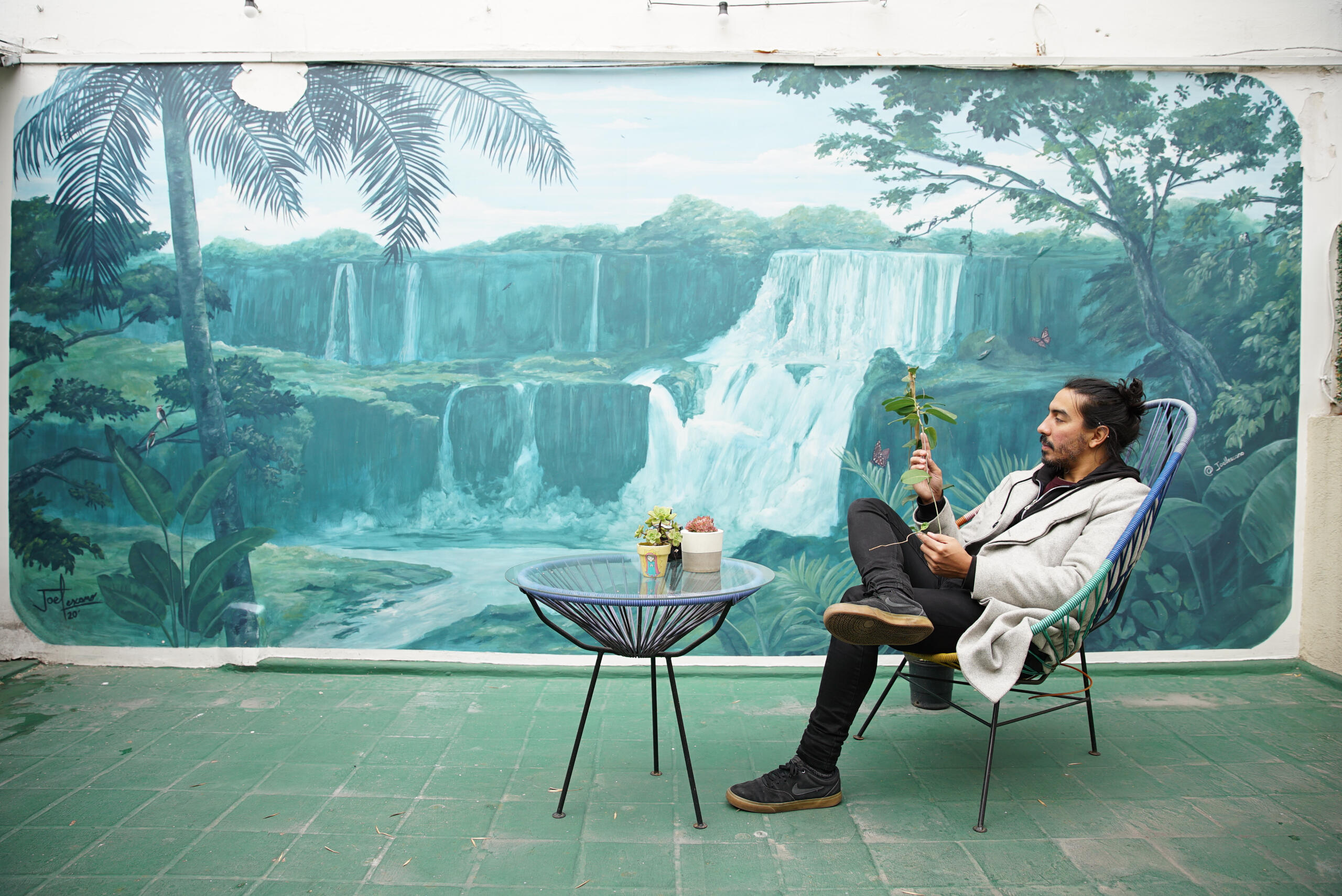 Joel Lescano encontró en el muralismo la posibilidad de transportar el ojo humano hacia paisajes idílicos de una naturaleza exótica y salvaje. Su pasión por el mundo vegetal y animal le lleva a representar paisajes inspirados en la selva misionera de Argentina, los cafetales de Colombia y la amazonia de Brasil; además de su admiración hacia los montes asiáticos. Poniendo en valor todo lo que nos enseña la naturaleza, también propone una mirada fantasiosa combinando lo natural con animales, elementos y concepciones más oníricas del mundo.